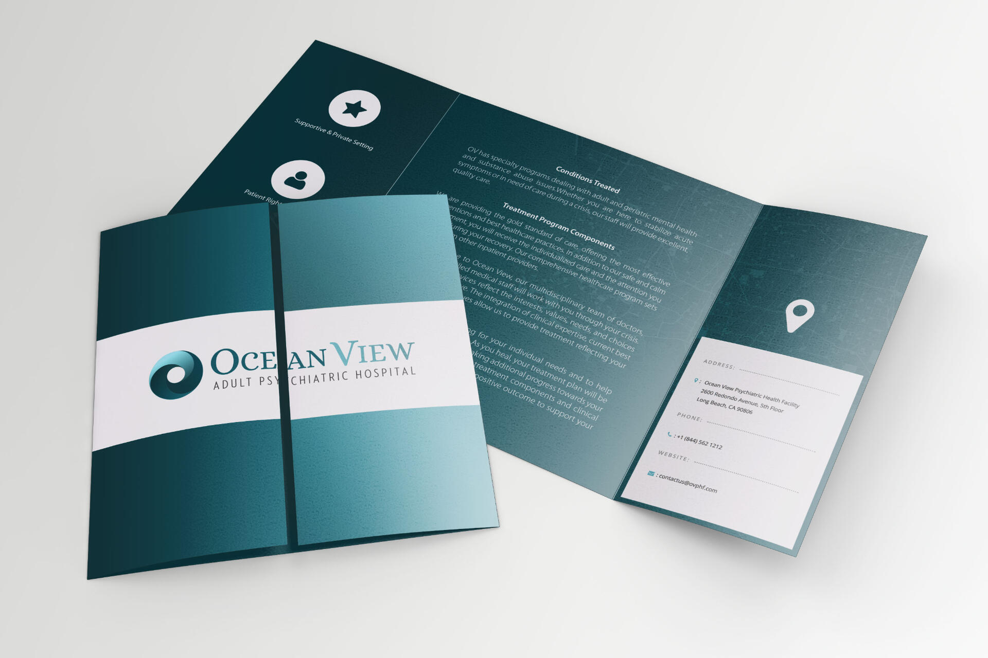 The exterior shape of the logo is both an 'O' for Ocean - as well as an Iris shape representing 'a view'. The Interior gradients & shapes represent a crashing, soothing ocean. Psychologically, the color Blue "calls to mind feelings of calmness or serenity. It is often described as peaceful, tranquil, secure, and orderly."