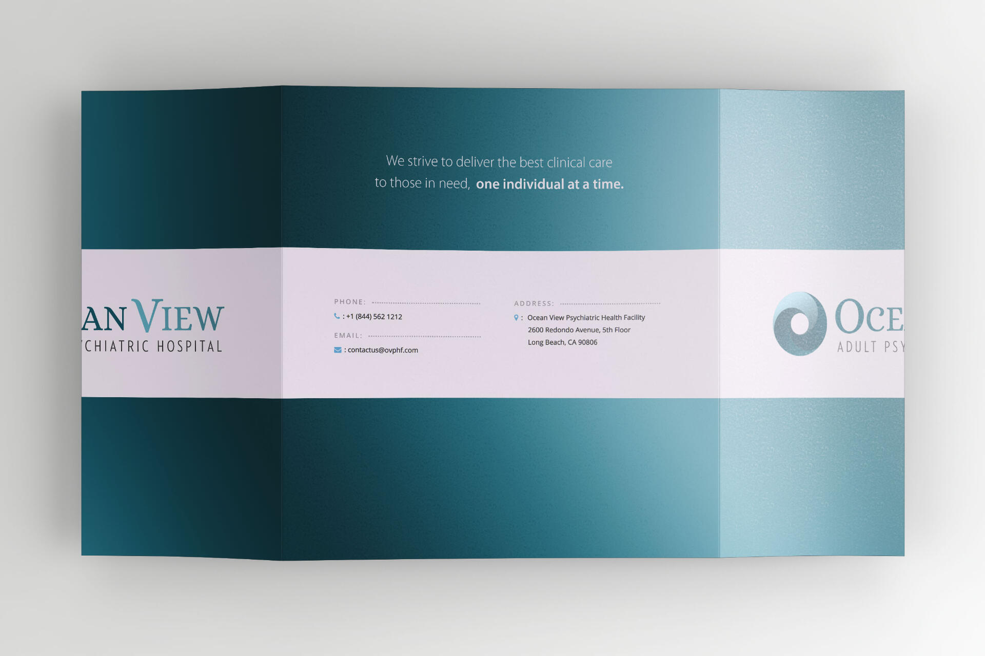 The exterior shape of the logo is both an 'O' for Ocean - as well as an Iris shape representing 'a view'. The Interior gradients & shapes represent a crashing, soothing ocean. Psychologically, the color Blue "calls to mind feelings of calmness or serenity. It is often described as peaceful, tranquil, secure, and orderly."